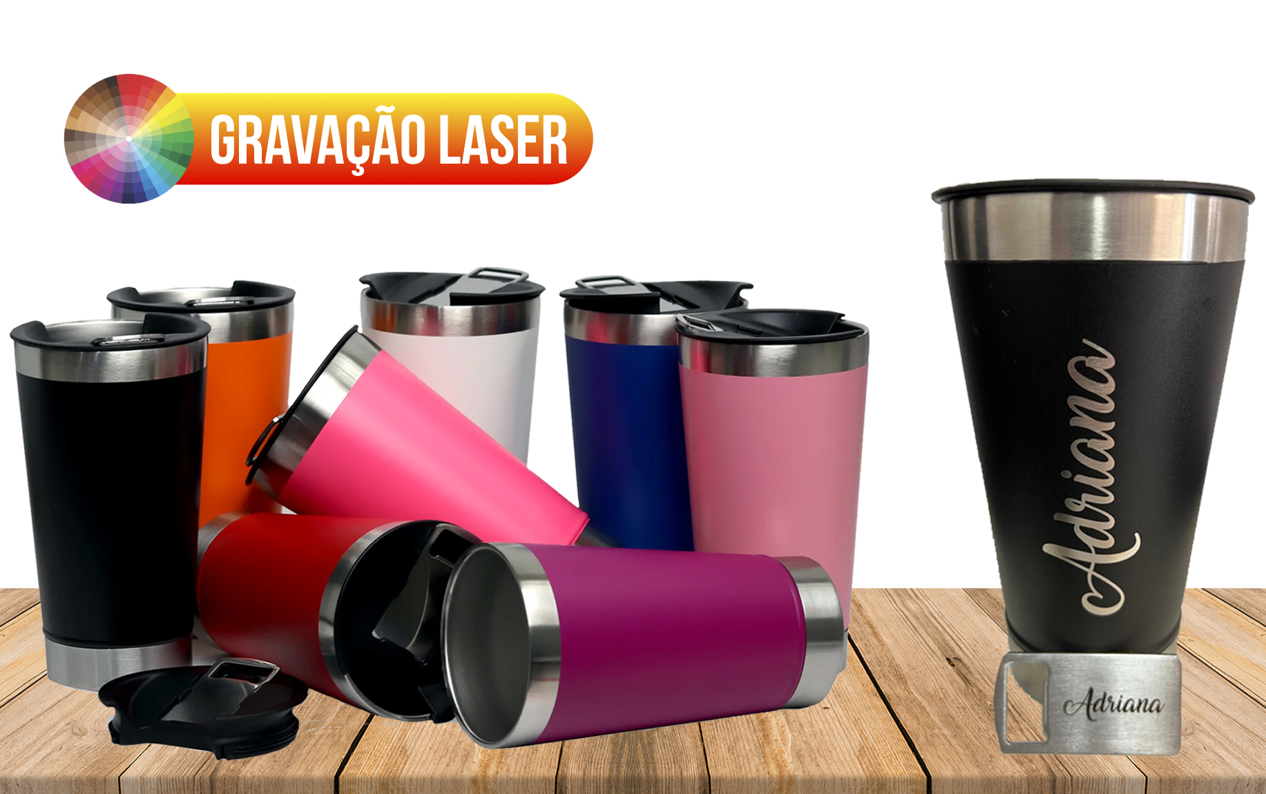 • Gravação à Laser em Copos, Garrafas, Facas, etc.