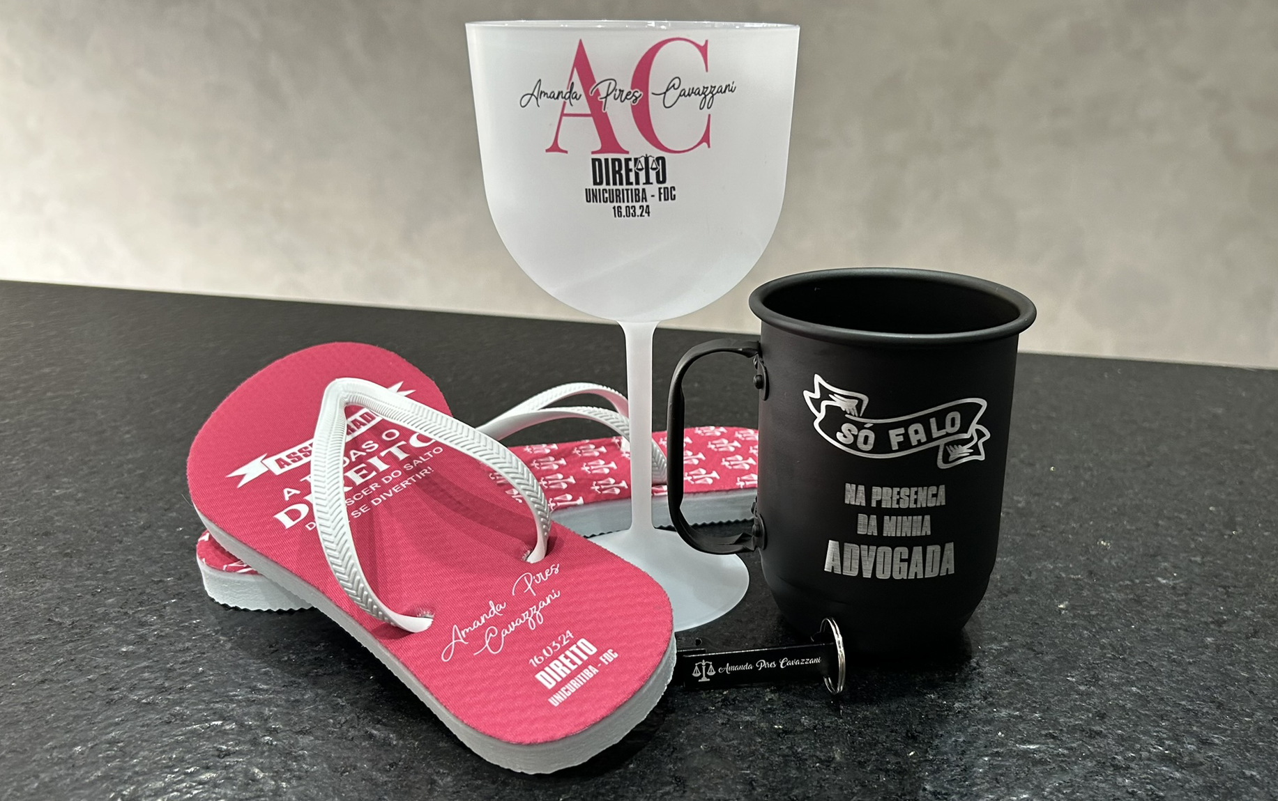Empresa especializada em personalização de brindes para Festas, Eventos, Empresas e muito mais: Canecas de cerâmica, Copos Térmicos, Camisetas, Taças de Acrílico, Gravaçao a laser, DTF Têxtil e UV. Consulte-nos.